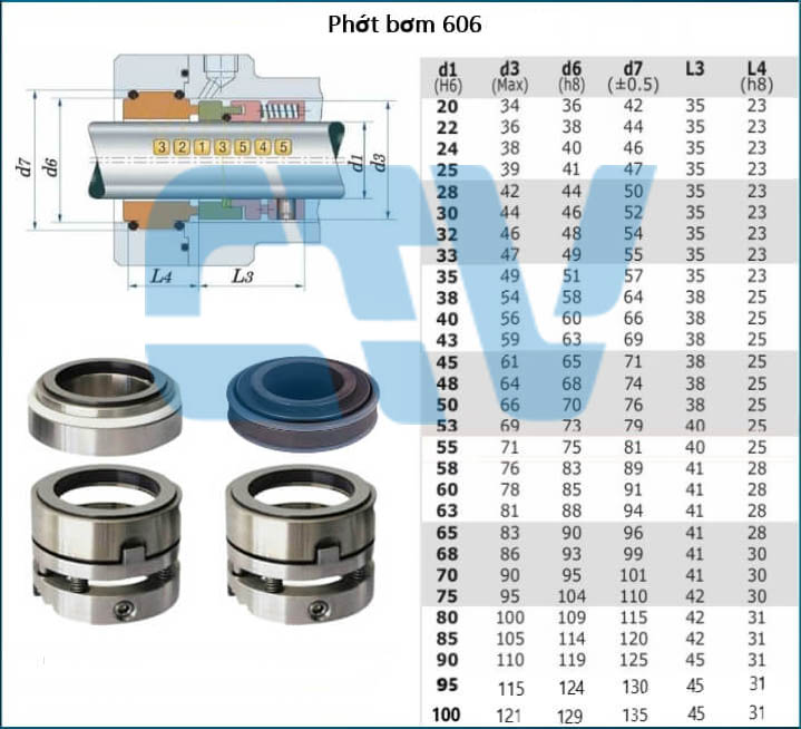 Phớt máy bơm type 606 hay phụ kiện của máy bơm nước đang được cung cấp tại Cường Thịnh Vương JSC với ứng dụng làm kín trục bơm, sử dụng cho bơm hoá chất, bơm chân không và dùng cho máy bơm nước khác có cùng tiêu chuẩn phớt.